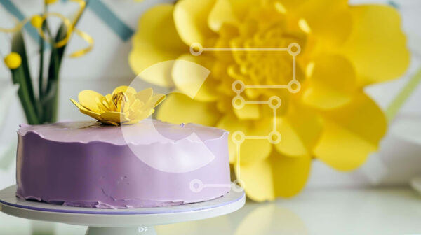 Intra Συλλεκτικό Ξύλινο Παζλ Plywood 4mm – Μωβ κέικ με κίτρινο λουλούδι Σε Ξύλινο Κουτί – Διαστάσεις: 10×10 cm – 25 κομμάτια