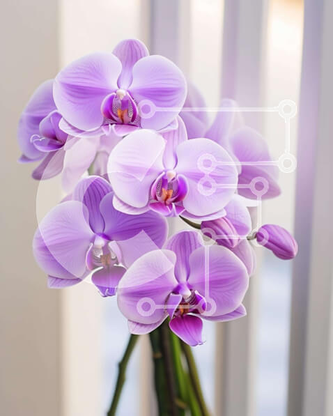 Intra Συλλεκτικό Ξύλινο Παζλ Plywood 4mm – Μωβ λουλούδια ορχιδέας σε βάζο σε περβάζι παραθύρου Σε Ξύλινο Κουτί – Διαστάσεις: 10×10 cm – 25 κομμάτια