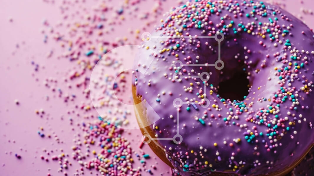 Intra Συλλεκτικό Ξύλινο Παζλ Plywood 4mm – Μωβ ντόνατ με ψεκασμούς σε ροζ φόντο Σε Ξύλινο Κουτί – Διαστάσεις: 10×10 cm – 25 κομμάτια