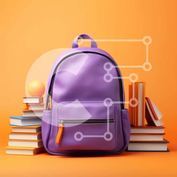Intra Συλλεκτικό Ξύλινο Παζλ Plywood 4mm – Μωβ σακίδιο πλάτης και βιβλία σε πορτοκαλί φόντο Σε Ξύλινο Κουτί – Διαστάσεις: 10×10 cm – 25 κομμάτια