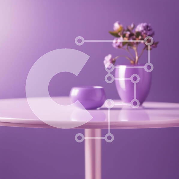 Intra Συλλεκτικό Ξύλινο Παζλ Plywood 4mm – Μωβ τοίχος με λευκό τραπέζι και μωβ λουλούδια Σε Ξύλινο Κουτί – Διαστάσεις Puzzle: 10×10 cm – 25 κομμάτια