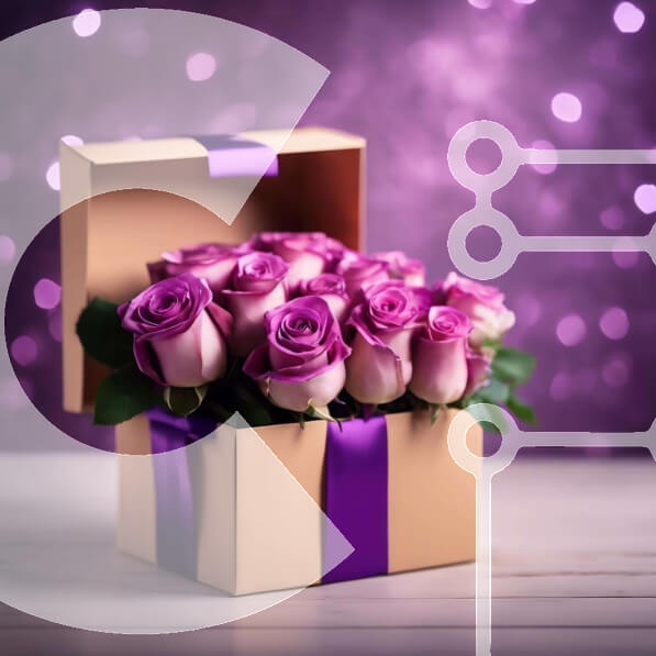 Intra Συλλεκτικό Ξύλινο Παζλ Plywood 4mm – Μωβ τριαντάφυλλα σε χάρτινο κουτί σε διακοσμημένο ξύλινο τραπέζι Σε Ξύλινο Κουτί – Διαστάσεις: 10×10 cm – 25 κομμάτια