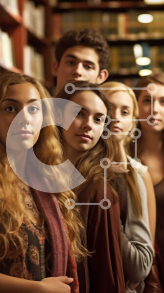 Intra Συλλεκτικό Ξύλινο Παζλ Plywood 4mm – Νέοι σε μια βιβλιοθήκη που κοιτάζουν βιβλία Σε Ξύλινο Κουτί – Διαστάσεις Puzzle: 10×10 cm – 25 κομμάτια