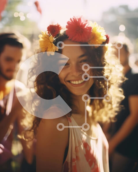 Intra Συλλεκτικό Ξύλινο Παζλ Plywood 4mm – Νεαρή γυναίκα με λουλούδια στα μαλλιά σε υπαίθρια εκδήλωση Σε Ξύλινο Κουτί – Διαστάσεις Puzzle: 10×10 cm – 25 κομμάτια
