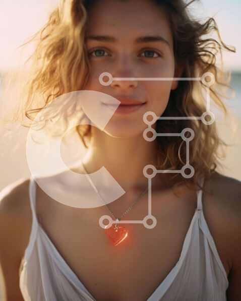 Intra Συλλεκτικό Ξύλινο Παζλ Plywood 4mm – Νεαρή γυναίκα στην παραλία με πορτοκαλί κολιέ καρδιά Σε Ξύλινο Κουτί – Διαστάσεις Puzzle: 10×10 cm – 25 κομμάτια