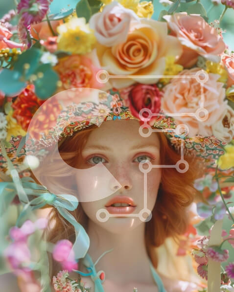 Intra Συλλεκτικό Ξύλινο Παζλ Plywood 4mm – Νεαρή γυναίκα με περίτεχνο floral καπέλο με πολύχρωμα λουλούδια Σε Ξύλινο Κουτί – Διαστάσεις Puzzle: 10×10 cm – 25 κομμάτια