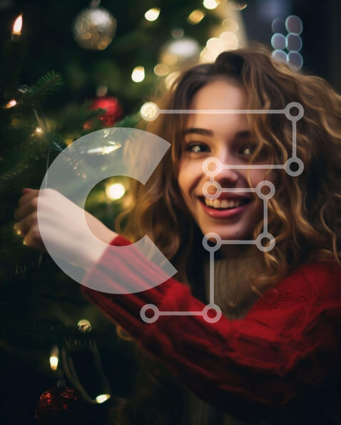 Intra Συλλεκτικό Ξύλινο Παζλ Plywood 4mm – Νεαρή γυναίκα που διακοσμεί το χριστουγεννιάτικο δέντρο με τα φώτα Σε Ξύλινο Κουτί – Διαστάσεις: 10×10 cm – 25 κομμάτια