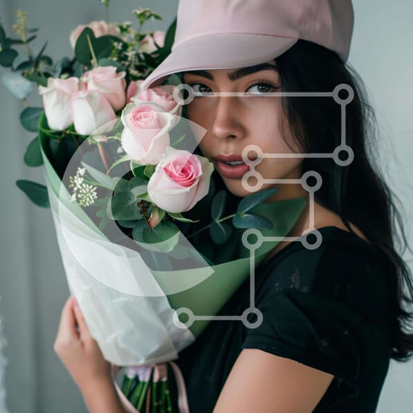 Intra Συλλεκτικό Ξύλινο Παζλ Plywood 4mm – Νεαρή γυναίκα που κρατά μπουκέτο με ροζ τριαντάφυλλα Σε Ξύλινο Κουτί – Διαστάσεις: 10×10 cm – 25 κομμάτια