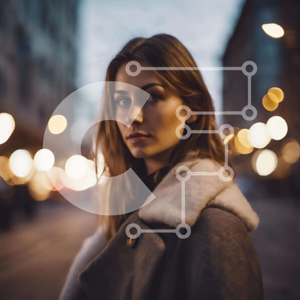 Intra Συλλεκτικό Ξύλινο Παζλ Plywood 4mm – Νεαρή γυναίκα στην πόλη τη νύχτα με θολό φόντο και φώτα Σε Ξύλινο Κουτί – Διαστάσεις Puzzle: 10×10 cm – 25 κομμάτια
