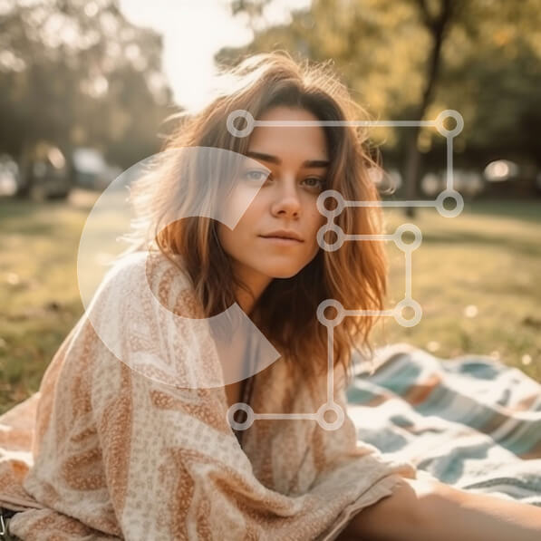 Intra Συλλεκτικό Ξύλινο Παζλ Plywood 4mm – Νεαρή γυναίκα που κάθεται στην κουβέρτα στο πάρκο και κοιτάζει το τηλέφωνο Σε Ξύλινο Κουτί – Διαστάσεις Puzzle: 10×10 cm – 25 κομμάτια
