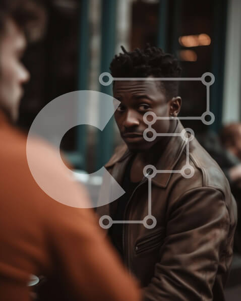 Intra Συλλεκτικό Ξύλινο Παζλ Plywood 4mm – Νεαρός μαύρος με καφέ δερμάτινο μπουφάν που μιλάει στο τηλέφωνο Σε Ξύλινο Κουτί – Διαστάσεις Puzzle: 10×10 cm – 25 κομμάτια