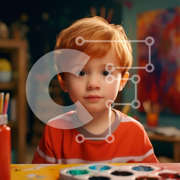 Intra Συλλεκτικό Ξύλινο Παζλ Plywood 4mm – Νεαρό αγόρι με κόκκινα μαλλιά και παλέτα βαφής Σε Ξύλινο Κουτί – Διαστάσεις Puzzle: 10×10 cm – 25 κομμάτια