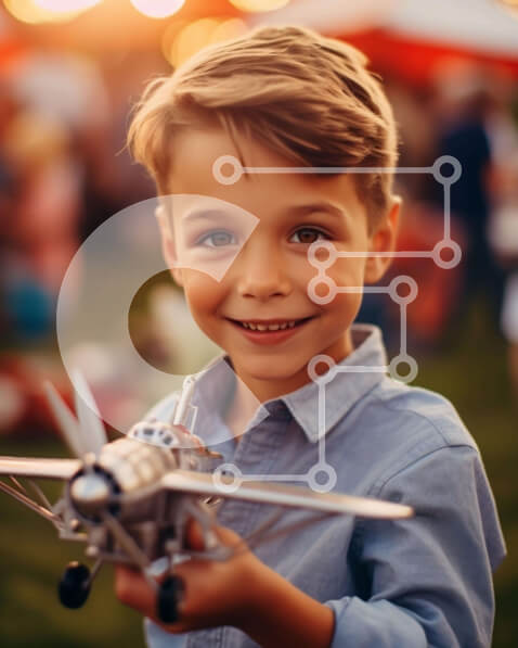 Intra Συλλεκτικό Ξύλινο Παζλ Plywood 4mm – Νεαρό αγόρι με παιχνίδι μοντέλο αεροπλάνου Σε Ξύλινο Κουτί – Διαστάσεις Puzzle: 10×10 cm – 25 κομμάτια