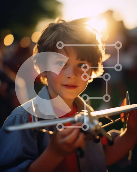 Intra Συλλεκτικό Ξύλινο Παζλ Plywood 4mm – Νεαρό αγόρι που παίζει με το μοντέλο αεροπλάνου Σε Ξύλινο Κουτί – Διαστάσεις Puzzle: 10×10 cm – 25 κομμάτια