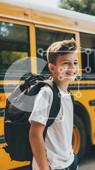 Intra Συλλεκτικό Ξύλινο Παζλ Plywood 4mm – Νεαρό αγόρι έτοιμο για το σχολείο με το κίτρινο σχολικό λεωφορείο Σε Ξύλινο Κουτί – Διαστάσεις Puzzle: 10×10 cm – 25 κομμάτια