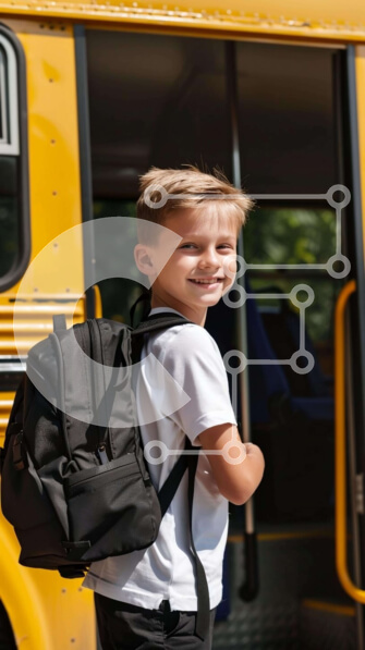 Intra Συλλεκτικό Ξύλινο Παζλ Plywood 4mm – Νεαρό αγόρι που επιβιβάζεται στο κίτρινο σχολικό λεωφορείο Σε Ξύλινο Κουτί – Διαστάσεις Puzzle: 10×10 cm – 25 κομμάτια