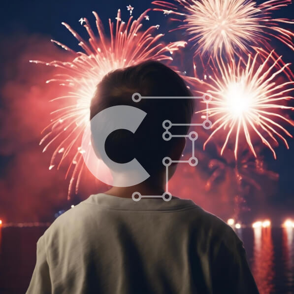Intra Συλλεκτικό Ξύλινο Παζλ Plywood 4mm – Νεαρό αγόρι που απολαμβάνει πυροτεχνήματα δίπλα στο νερό Σε Ξύλινο Κουτί – Διαστάσεις: 10×10 cm – 25 κομμάτια