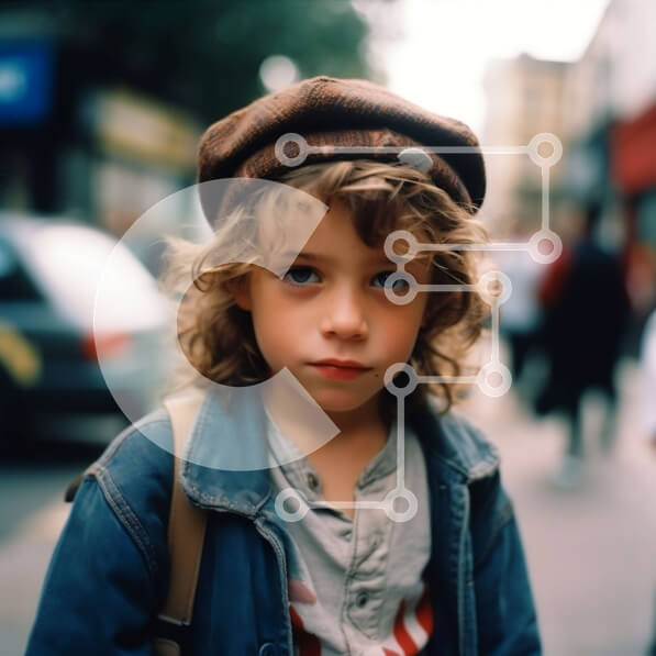 Intra Συλλεκτικό Ξύλινο Παζλ Plywood 4mm – Νεαρό αγόρι με καφέ καπέλο και μπλε μπουφάν που στέκεται στη γωνία του δρόμου Σε Ξύλινο Κουτί – Διαστάσεις Puzzle: 10×10 cm – 25 κομμάτια