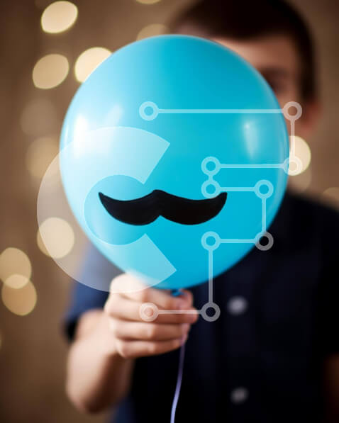 Intra Συλλεκτικό Ξύλινο Παζλ Plywood 4mm – Νεαρό αγόρι με φουσκωτό μπλε μπαλόνι και σημάδια από μουστάκι Σε Ξύλινο Κουτί – Διαστάσεις Puzzle: 10×10 cm – 25 κομμάτια