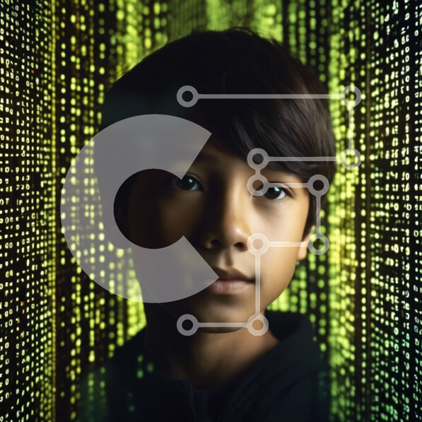 Intra Συλλεκτικό Ξύλινο Παζλ Plywood 4mm – Νεαρό αγόρι με φόντο δυαδικού κώδικα Σε Ξύλινο Κουτί – Διαστάσεις Puzzle: 10×10 cm – 25 κομμάτια