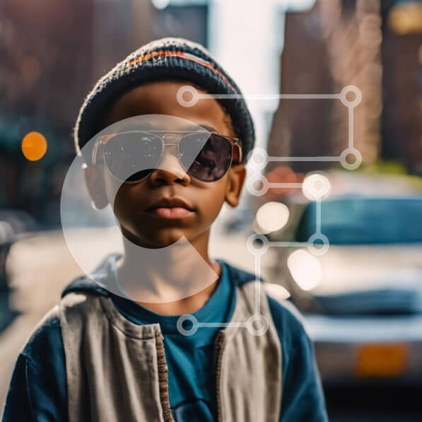 Intra Συλλεκτικό Ξύλινο Παζλ Plywood 4mm – Νεαρό αγόρι με γυαλιά ηλίου στην αστική οδό Σε Ξύλινο Κουτί – Διαστάσεις Puzzle: 10×10 cm – 25 κομμάτια