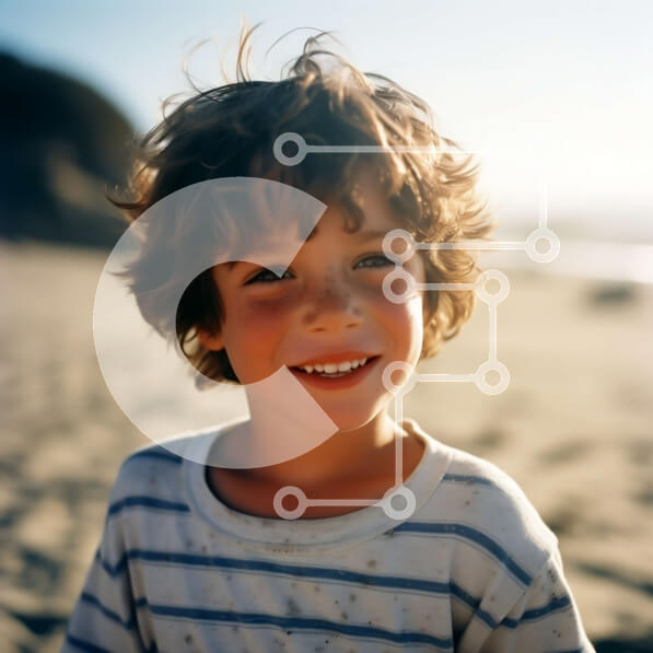 Intra Συλλεκτικό Ξύλινο Παζλ Plywood 4mm – Νεαρό αγόρι που χαμογελά στην παραλία με σγουρά μαλλιά και ριγέ πουκάμισο Σε Ξύλινο Κουτί – Διαστάσεις Puzzle: 10×10 cm – 25 κομμάτια