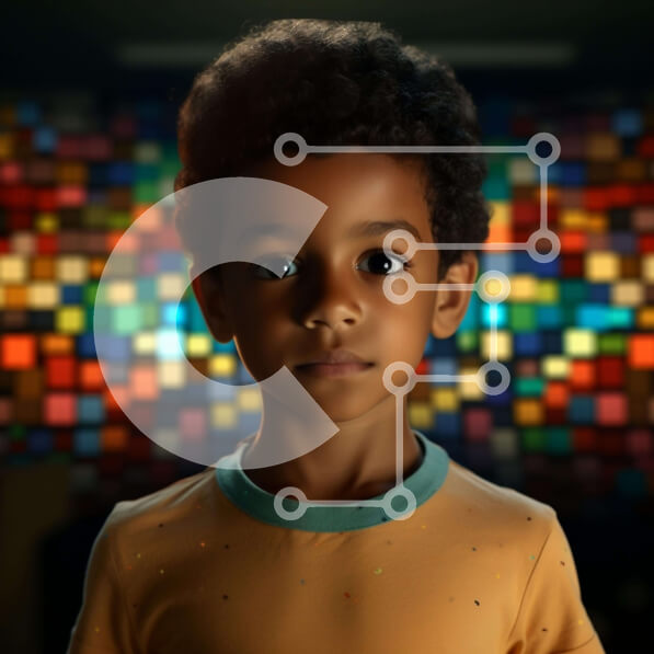 Intra Συλλεκτικό Ξύλινο Παζλ Plywood 4mm – Νεαρό αγόρι μπροστά από το αφηρημένο υπόβαθρο Σε Ξύλινο Κουτί – Διαστάσεις Puzzle: 10×10 cm – 25 κομμάτια