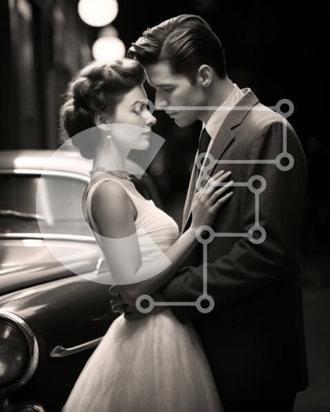 Intra Συλλεκτικό Ξύλινο Παζλ Plywood 4mm – Νεαρό ζευγάρι που στέκεται δίπλα στο Vintage αυτοκίνητο Σε Ξύλινο Κουτί – Διαστάσεις Puzzle: 10×10 cm – 25 κομμάτια