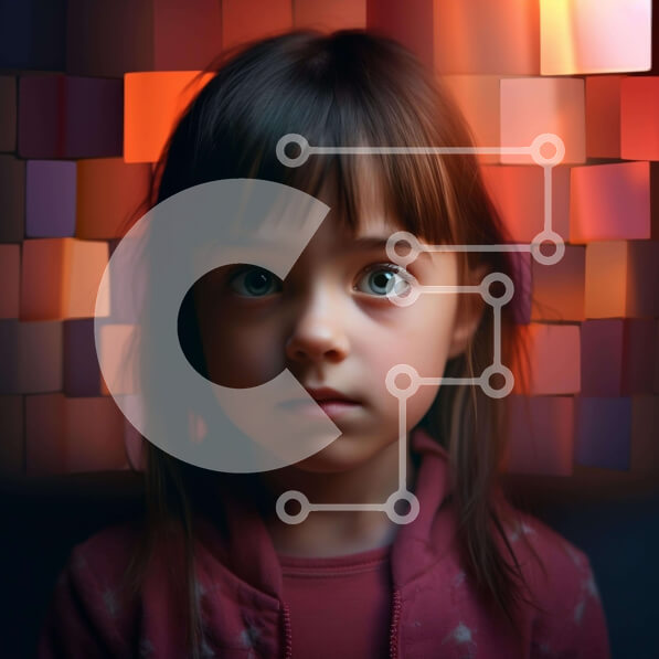 Intra Συλλεκτικό Ξύλινο Παζλ Plywood 4mm – Νεαρό κορίτσι μπροστά από το αφηρημένο υπόβαθρο Σε Ξύλινο Κουτί – Διαστάσεις Puzzle: 10×10 cm – 25 κομμάτια