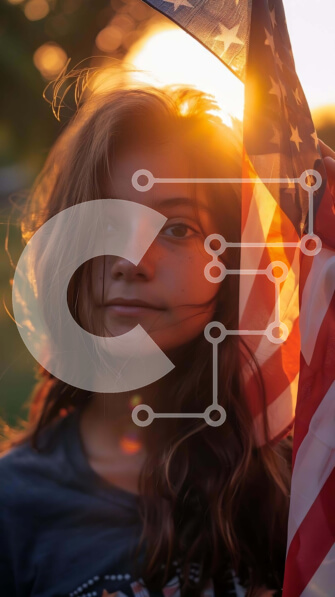 Intra Συλλεκτικό Ξύλινο Παζλ Plywood 4mm – Νεαρό κορίτσι με την αμερικανική σημαία Σε Ξύλινο Κουτί – Διαστάσεις Puzzle: 10×10 cm – 25 κομμάτια