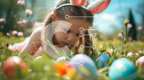 Intra Συλλεκτικό Ξύλινο Παζλ Plywood 4mm – Νεαρό κορίτσι με αυτιά λαγουδάκι και πολύχρωμα Πασχαλινά αυγά την άνοιξη Σε Ξύλινο Κουτί – Διαστάσεις Puzzle: 10×10 cm – 25 κομμάτια