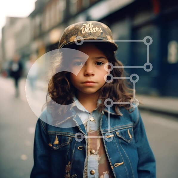 Intra Συλλεκτικό Ξύλινο Παζλ Plywood 4mm – Νεαρό κορίτσι με καμουφλάζ και τζιν μπουφάν στο City Street Σε Ξύλινο Κουτί – Διαστάσεις Puzzle: 10×10 cm – 25 κομμάτια