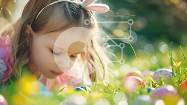 Intra Συλλεκτικό Ξύλινο Παζλ Plywood 4mm – Νεαρό κορίτσι που παίζει με τα πασχαλινά αυγά στο γρασίδι Σε Ξύλινο Κουτί – Διαστάσεις Puzzle: 10×10 cm – 25 κομμάτια