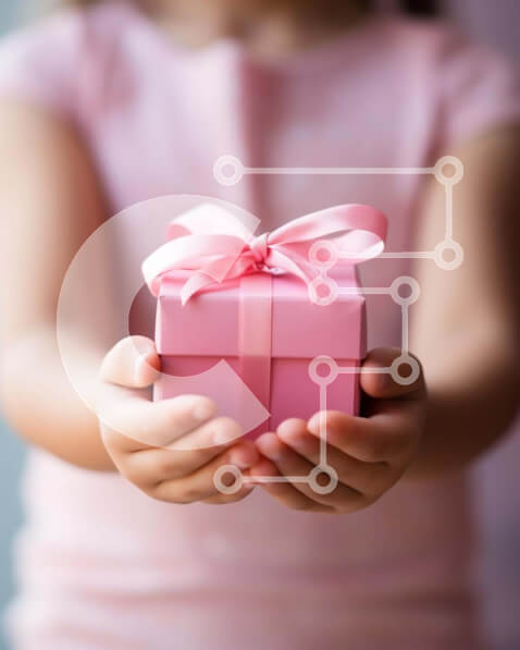Intra Συλλεκτικό Ξύλινο Παζλ Plywood 4mm – Νεαρό κορίτσι με ανοιχτό ροζ κουτί δώρου και κορδέλα Σε Ξύλινο Κουτί – Διαστάσεις: 10×10 cm – 25 κομμάτια