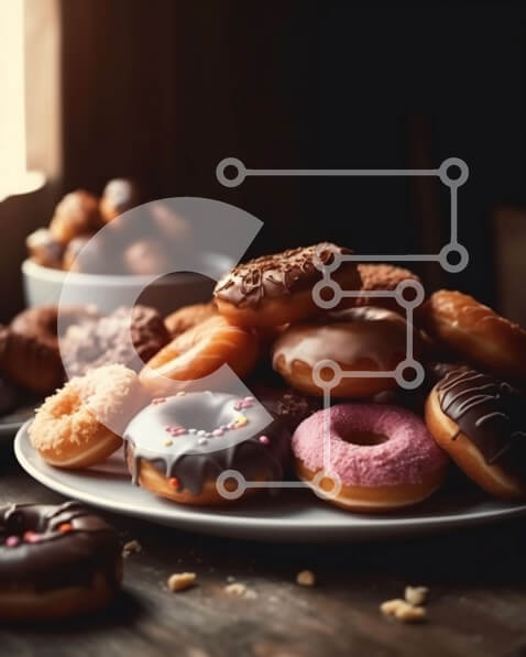 Intra Συλλεκτικό Ξύλινο Παζλ Plywood 4mm – Νόστιμη εικόνα από φρέσκα ντόνατς με διάφορα γαρνιρίσματα σε ξύλινο τραπέζι Σε Ξύλινο Κουτί – Διαστάσεις: 10×10 cm – 25 κομμάτια