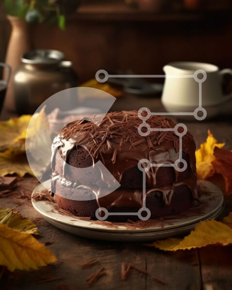 Intra Συλλεκτικό Ξύλινο Παζλ Plywood 4mm – Νόστιμη εικόνα ενός κέικ σοκολάτας με παγωμένο σοκολάτα σε ένα πιάτο με φθινοπωρινά φύλλα στο φόντο Σε Ξύλινο Κουτί – Διαστάσεις: 10×10 cm – 25 κομμάτια