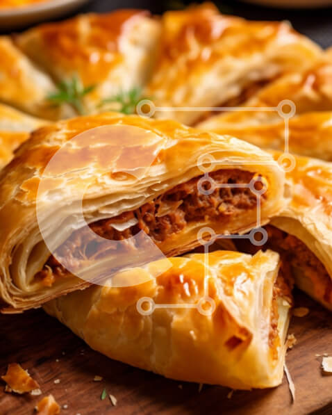 Intra Συλλεκτικό Ξύλινο Παζλ Plywood 4mm – Νόστιμη ζύμη με τυρί με γέμιση κρέας σε ξύλινο ξύλο κοπής Σε Ξύλινο Κουτί – Διαστάσεις: 10×10 cm – 25 κομμάτια
