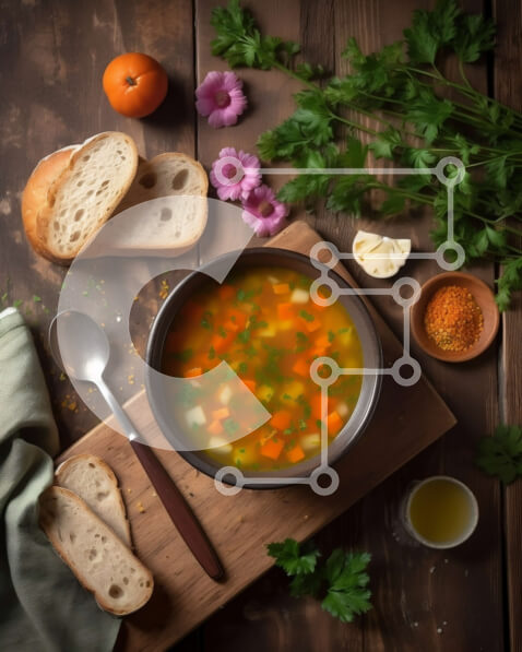 Intra Συλλεκτικό Ξύλινο Παζλ Plywood 4mm – Νόστιμη και υγιεινή σούπα λαχανικών με ψωμί και μυρωδικά Σε Ξύλινο Κουτί – Διαστάσεις: 10×10 cm – 25 κομμάτια