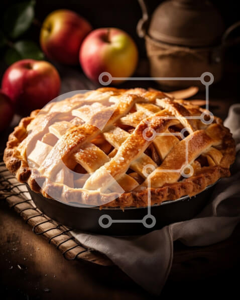 Intra Συλλεκτικό Ξύλινο Παζλ Plywood 4mm – Νόστιμη μηλόπιτα σε ξύλινο τραπέζι με μήλα στο φόντο Σε Ξύλινο Κουτί – Διαστάσεις: 10×10 cm – 25 κομμάτια