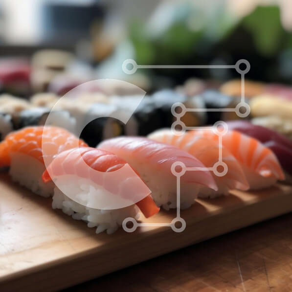 Intra Συλλεκτικό Ξύλινο Παζλ Plywood 4mm – Νόστιμη πιατέλα σούσι με ρολά σολομού, τόνου και αβοκάντο Σε Ξύλινο Κουτί – Διαστάσεις: 10×10 cm – 25 κομμάτια