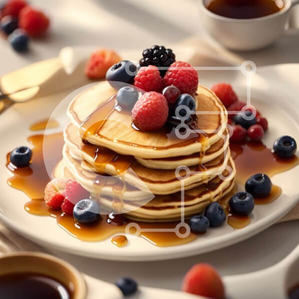 Intra Συλλεκτικό Ξύλινο Παζλ Plywood 4mm – Νόστιμη στοίβα από τηγανίτες με φρέσκα μούρα και σιρόπι Σε Ξύλινο Κουτί – Διαστάσεις: 10×10 cm – 25 κομμάτια