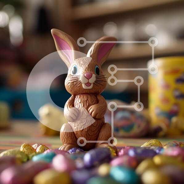Intra Συλλεκτικό Ξύλινο Παζλ Plywood 4mm – Νόστιμο καφέ σοκολατένιο λαγουδάκι που περιβάλλεται από πολύχρωμα πασχαλινά αυγά Σε Ξύλινο Κουτί – Διαστάσεις: 10×10 cm – 25 κομμάτια