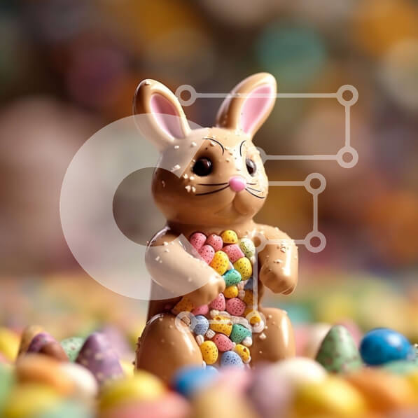 Intra Συλλεκτικό Ξύλινο Παζλ Plywood 4mm – Νόστιμο σοκολατένιο κουνέλι σε ένα κρεβάτι με πολύχρωμη καραμέλα Σε Ξύλινο Κουτί – Διαστάσεις: 10×10 cm – 25 κομμάτια