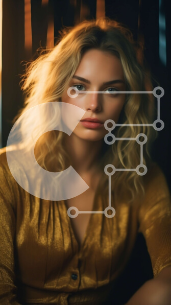 Intra Συλλεκτικό Ξύλινο Παζλ Plywood 4mm – Ξανθιά γυναίκα ποζάρει με χρυσή μπλούζα σε σκούρο φόντο Σε Ξύλινο Κουτί – Διαστάσεις Puzzle: 10×10 cm – 25 κομμάτια