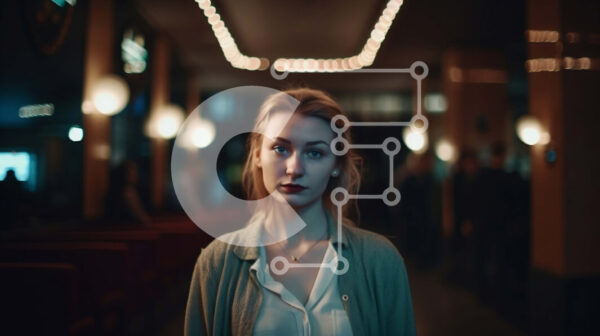 Intra Συλλεκτικό Ξύλινο Παζλ Plywood 4mm – Ξανθιά γυναίκα με πράσινο πουλόβερ που στέκεται σε αμυδρά φωτισμένο δωμάτιο με πολυέλαιο Σε Ξύλινο Κουτί – Διαστάσεις Puzzle: 10×10 cm – 25 κομμάτια