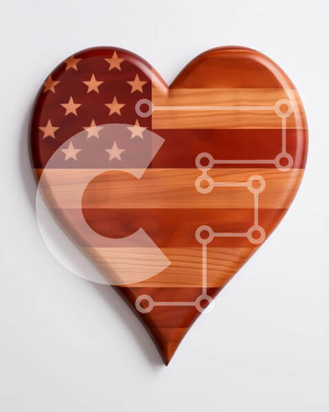 Intra Συλλεκτικό Ξύλινο Παζλ Plywood 4mm – Ξύλινη αμερικανική σημαία σε σχήμα καρδιάς σε λευκό φόντο Σε Ξύλινο Κουτί – Διαστάσεις Puzzle: 10×10 cm – 25 κομμάτια