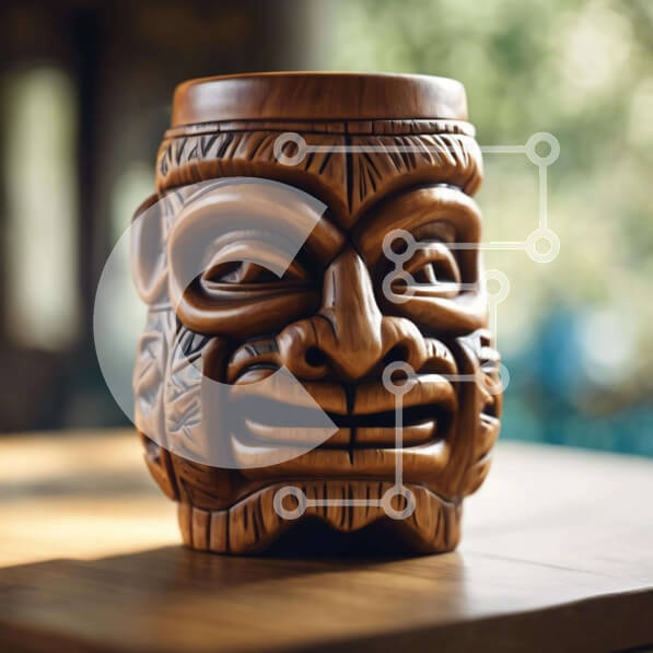 Intra Συλλεκτικό Ξύλινο Παζλ Plywood 4mm – Ξύλινη κούπα προσώπου Tiki σε ξύλινο τραπέζι Σε Ξύλινο Κουτί – Διαστάσεις: 10×10 cm – 25 κομμάτια