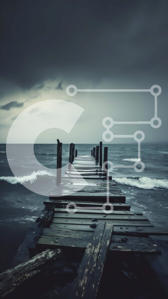 Intra Συλλεκτικό Ξύλινο Παζλ Plywood 4mm – Ξύλινη προβλήτα σε θυελλώδη καιρό δίπλα στον ωκεανό Σε Ξύλινο Κουτί – Διαστάσεις: 10×10 cm – 25 κομμάτια