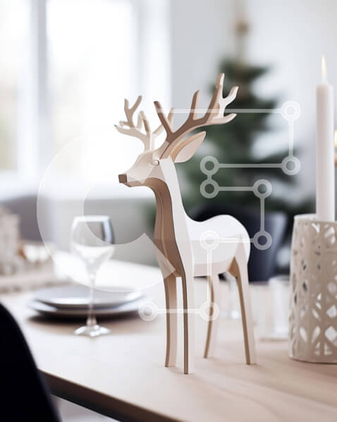 Intra Συλλεκτικό Ξύλινο Παζλ Plywood 4mm – Ξύλινο ειδώλιο ελαφιού σε εορταστικό τραπέζι με χριστουγεννιάτικα φώτα και κεριά Σε Ξύλινο Κουτί – Διαστάσεις: 10×10 cm – 25 κομμάτια