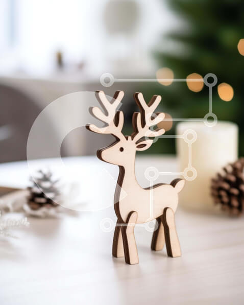 Intra Συλλεκτικό Ξύλινο Παζλ Plywood 4mm – Ξύλινο ειδώλιο ταράνδου με χριστουγεννιάτικα στολίδια Σε Ξύλινο Κουτί – Διαστάσεις: 10×10 cm – 25 κομμάτια